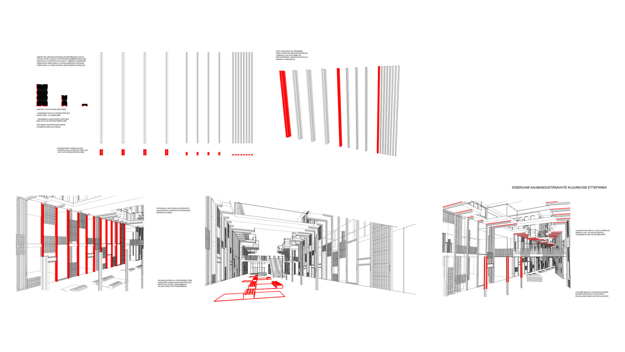 The interior solution for the Admiraliteedi Area was a part of an architectural contest hold in 2016. We aimed to create a commercial area that would consider the existing space and take advantage of the particularity of the marina. For more information look at KTA page.