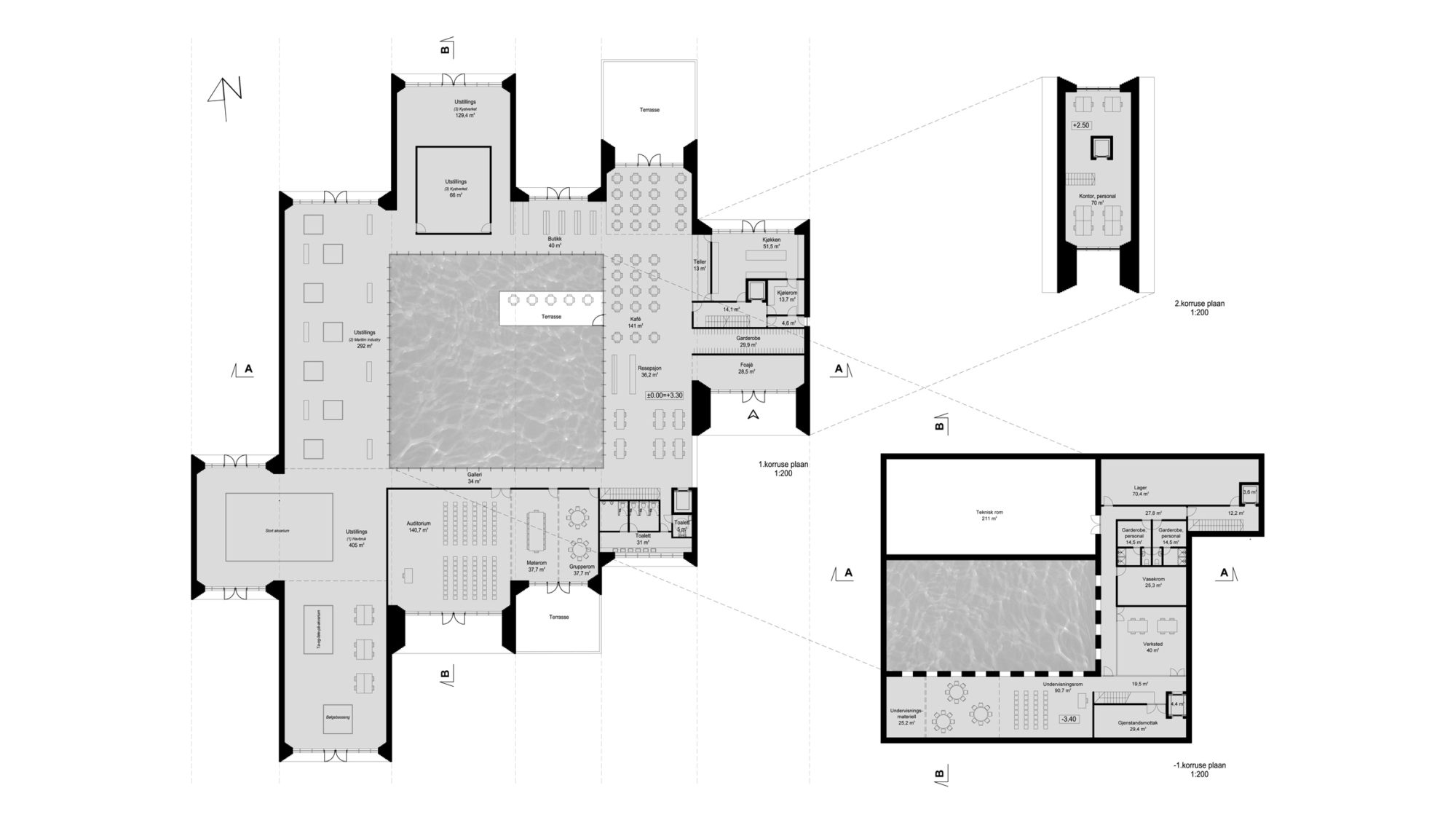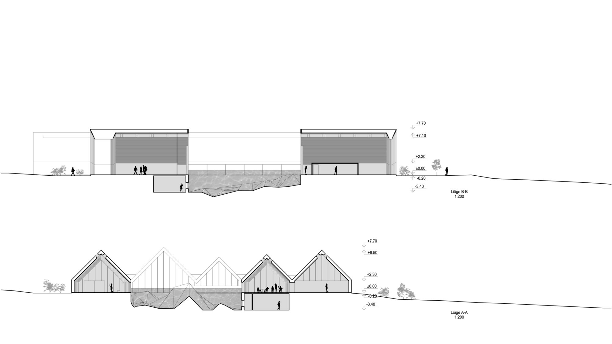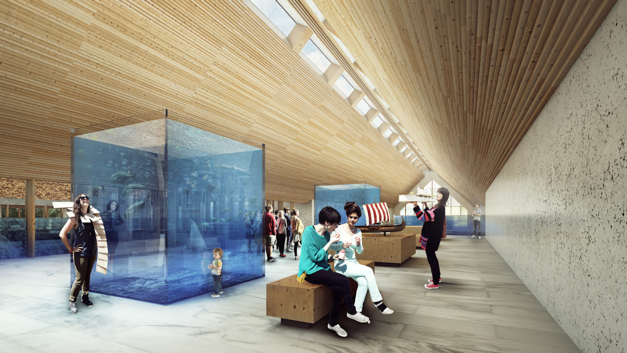 In 2014 the Maritime Museum in Norway announced a contest for the best concept. Together with Kadarik Tüür architects we offered a solution that was focused on the particularity of the shape. The architecture of the complex form a unique contour that is created with a gable roof and allows to be flexible for different exhibitions. The roof is partially cut for natural ventilation. The courtyard features a seaworld that creates an underwater feel and accompanies the exhibits by showing the local flora and fauna. The water levels can be regulated based on the need. The interior solution is based on the use of traditional materials such as wood and stone that challenge the large glass panels.